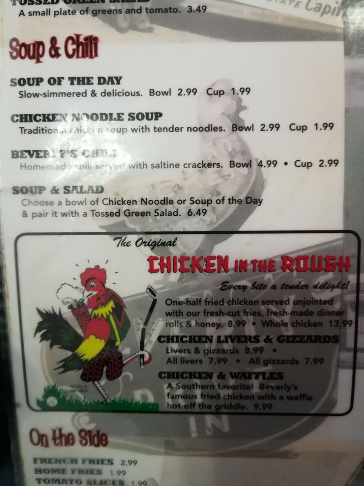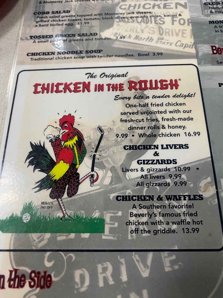 A Southern favorite! Beverlys famous fried chicken with a waffle hot off the griddle.